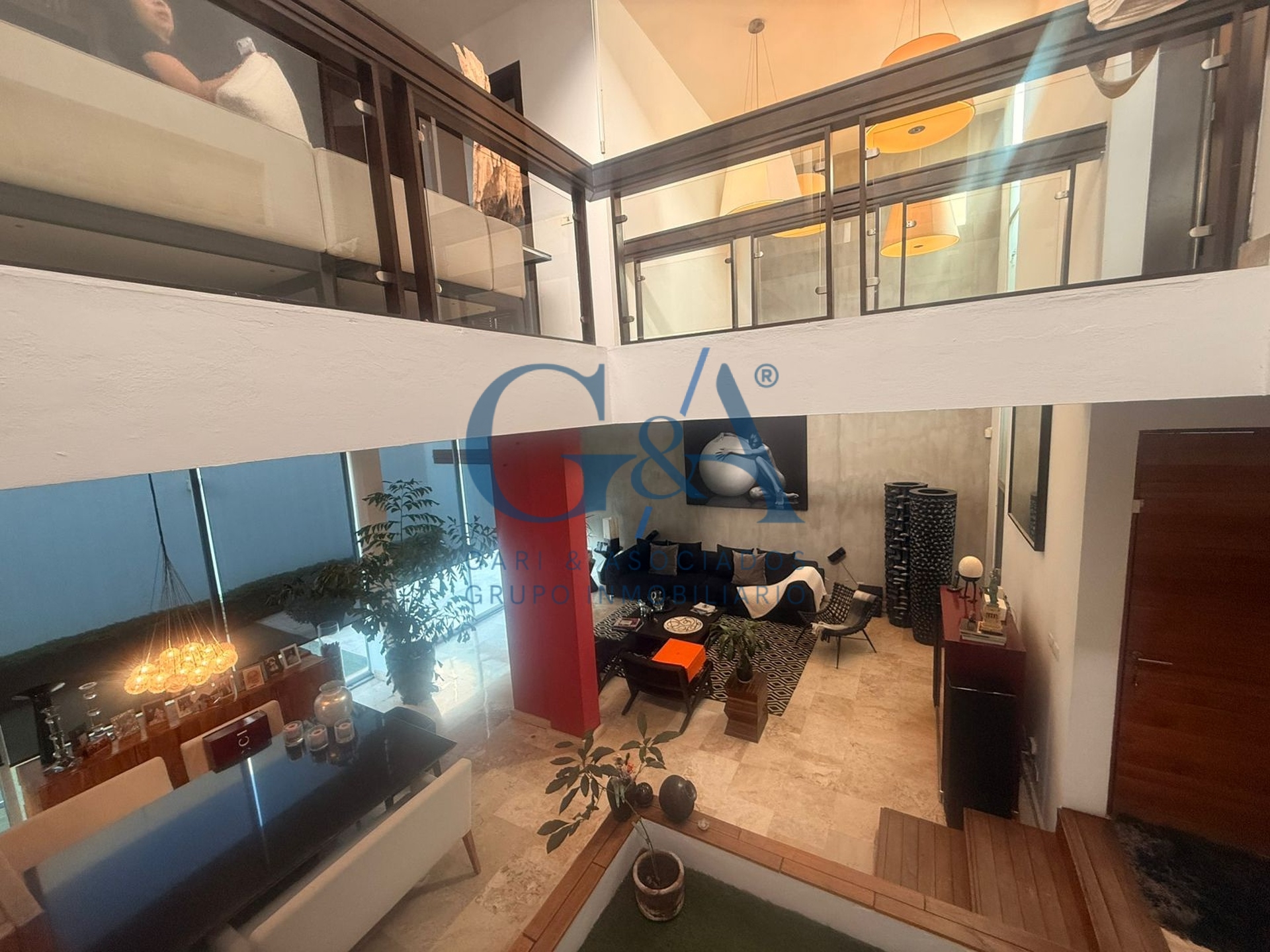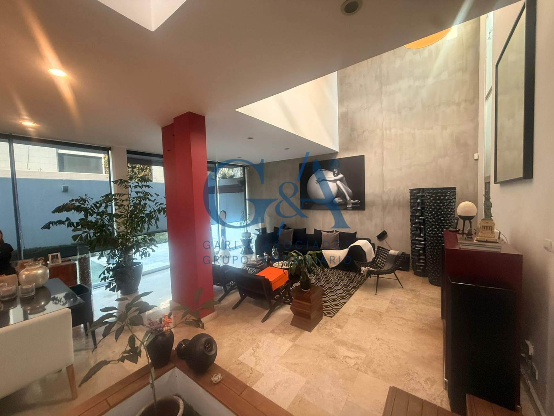 Sala a doble altura, que brinda una sensación de amplitud y gran iluminación natural.