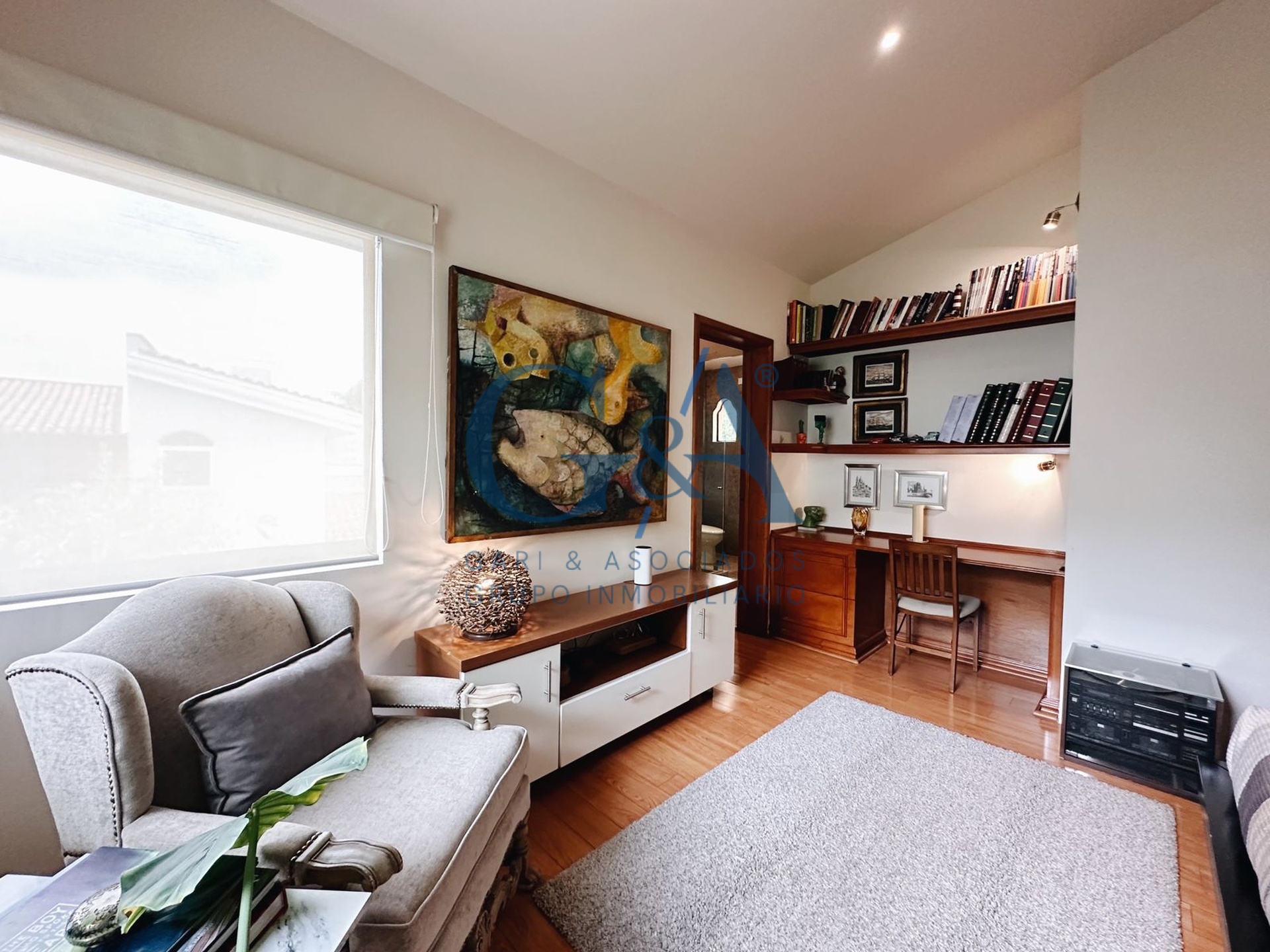 Sala, Comedor, Cocina integral con barra, cubierta de granito, lavavajillas, horno microondas y alacena independiente, Ante comedor, Estudio, Medio baño