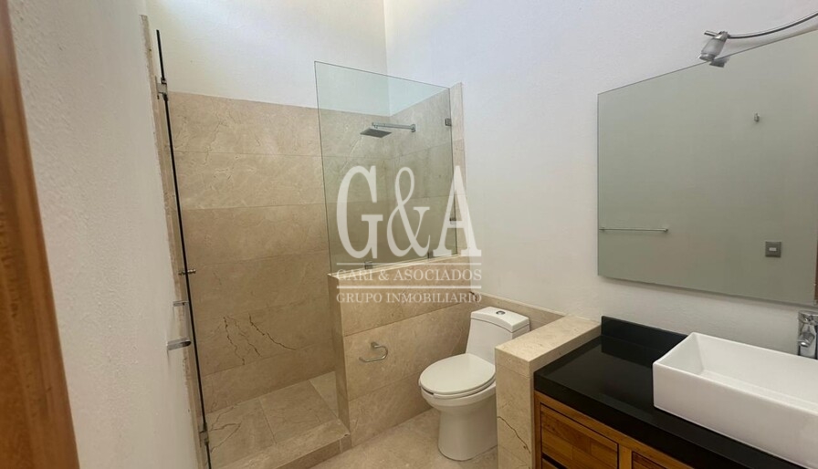 Planta baja: Recibidor, estudio, medio baño de visitas, sala y comedor muy amplias, cocina integral con barra, área de lavado y baño de servicio.