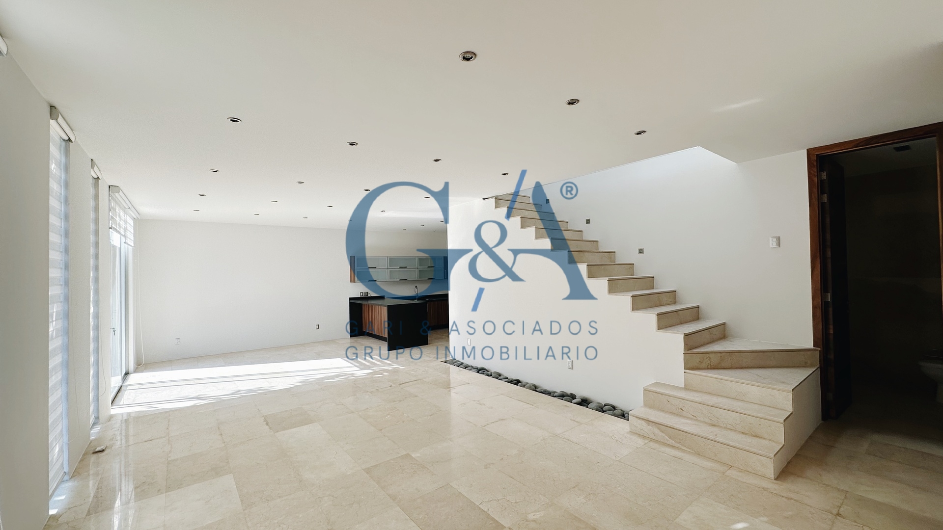 Planta baja: Recibidor, estudio, medio baño de visitas, sala y comedor muy amplias, cocina integral con barra, área de lavado y baño de servicio.